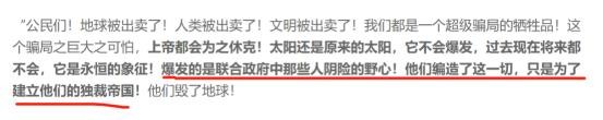 这群人中途反悔,搞阴谋论,搞反思,搞叛乱,其实都不重要……重要的是你想开倒车,你想把地球开回去……这就让之前的所有努力、付出、艰苦奋斗、伟大牺牲、获得的所有成就都白费了。